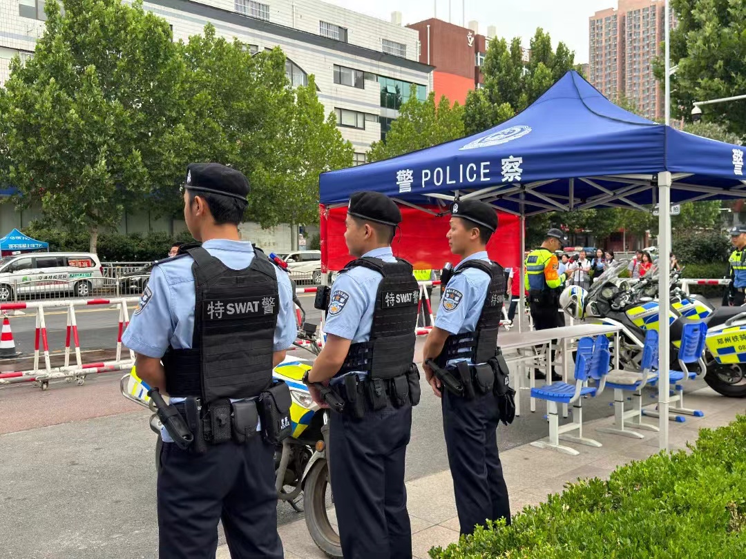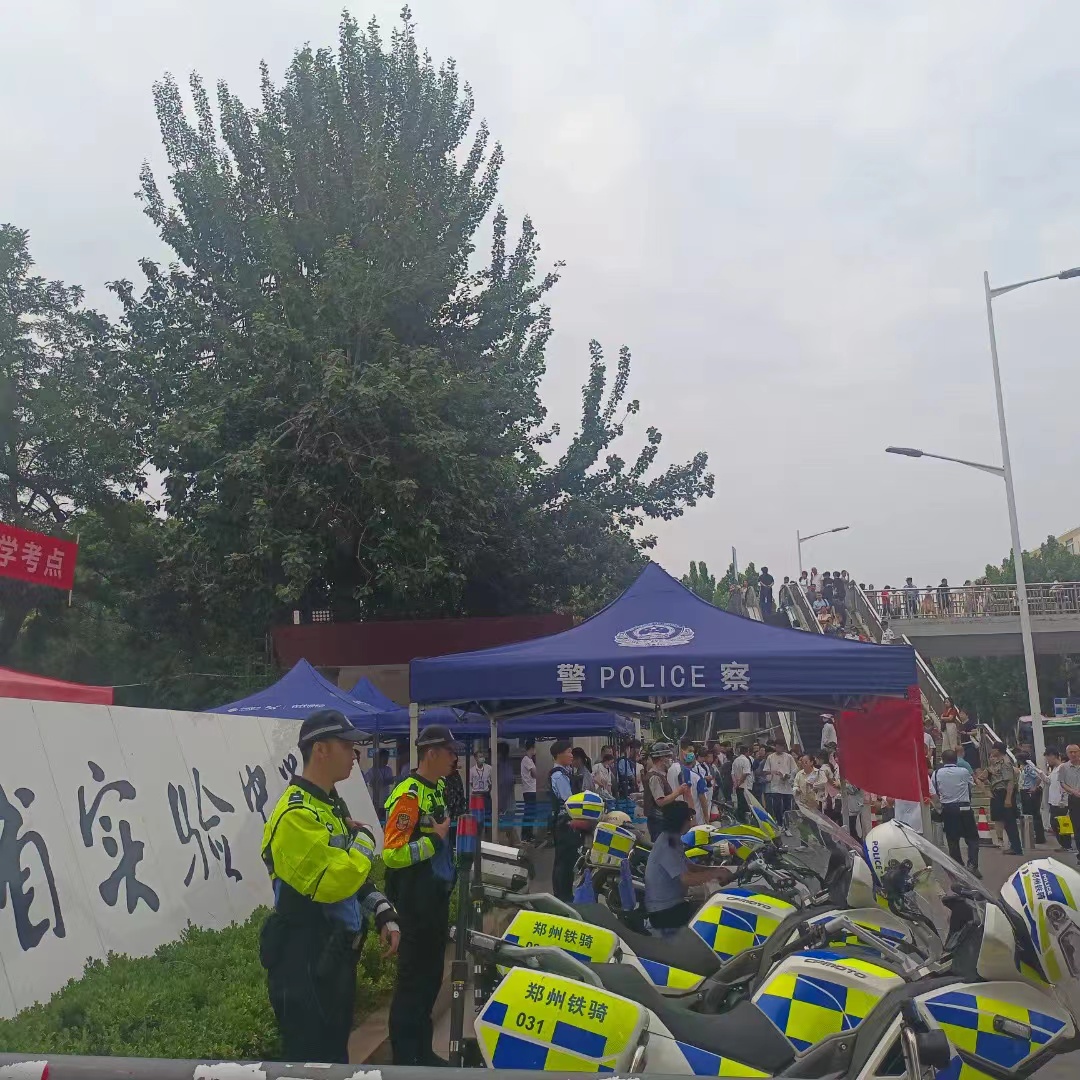 新乡市第十中学考点,新乡铁骑和十中保安为考生保驾护航