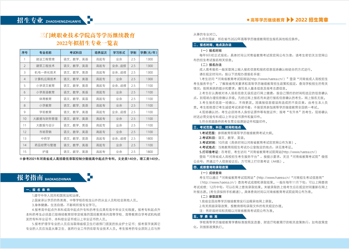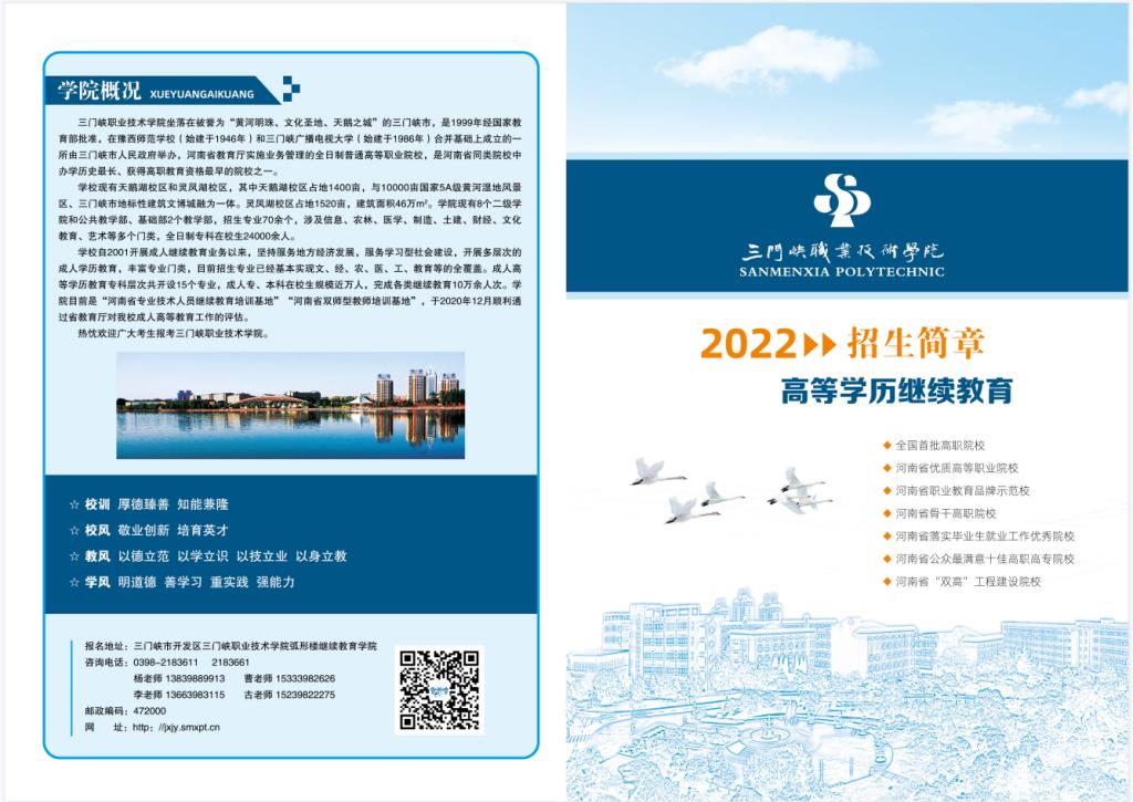 2022年三门峡职业技术学院高等学历继续教育招生简章